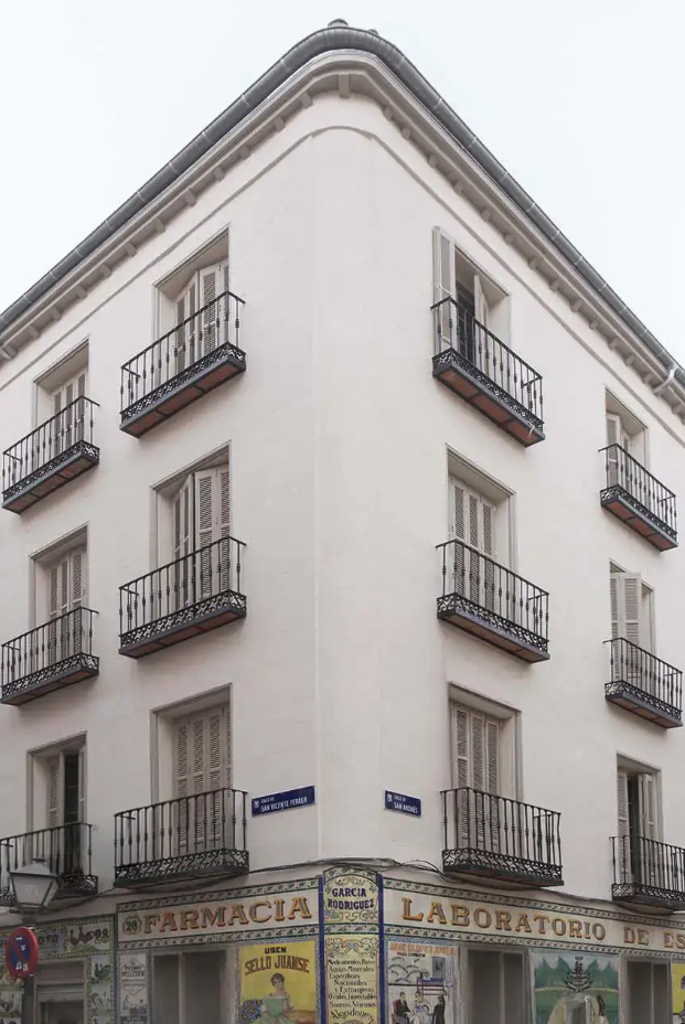 Este coliving nace en un edificio con más de un siglo de historia: la antigua Farmacia Juanse (1892), en pleno corazón de Malasaña.
